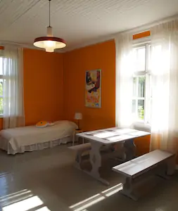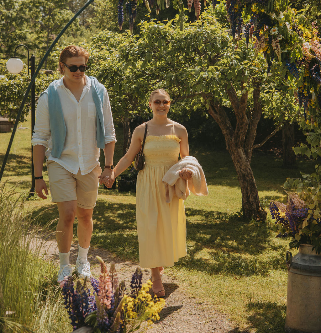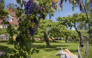 Valitse mieleinen piknik-paikka puutarhasta ja nappaa terassilta räsymatto alustaksi. Puutarha rajautuu lammasaitaukseen, jossa lauduntavat kolme hellyydenkipeää lammasta. Sateen sattuessa voit siirtää maksutta varauksen toiseen päivään, sillä meille piknik kuuluu jokapäiväiseen elämään koko kesän ajan.